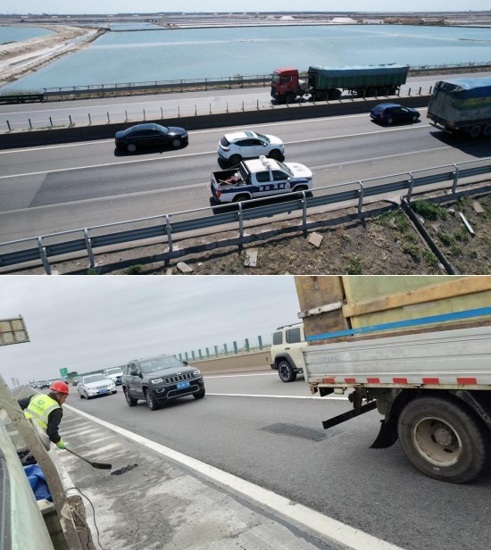二、守護(hù)“生命線”,力保全程“不斷流”?!半p節(jié)”期間,沿海分公司職工堅(jiān)守各崗位,嚴(yán)格執(zhí)行24小時(shí)值班制度和領(lǐng)導(dǎo)帶班制度,以“在崗一分鐘,盡責(zé)六十秒”的擔(dān)當(dāng),守護(hù)道路暢通。節(jié)前及假期,分公司領(lǐng)導(dǎo)班子靠前指揮,帶領(lǐng)業(yè)務(wù)部室人員下沉一線進(jìn)行安全保暢督導(dǎo),推動(dòng)各項(xiàng)安全保暢措施落到到位。各收費(fèi)站在崗人員全員上崗,車道全開,疏導(dǎo)員穿梭車流,引導(dǎo)客貨分行,ETC車道高效運(yùn)轉(zhuǎn),通行效率大幅提升。道路養(yǎng)護(hù)中心采用“路面+無人機(jī)+視頻”三維立體巡查模式,累計(jì)開展道路巡查40余次,無人機(jī)巡檢9次,巡查里程超4500余公里,投入保暢人員170余人次,清理散落物210余次,對雨天路面水毀病害進(jìn)行應(yīng)急搶修5次,全力保障社會(huì)公眾安全出行。